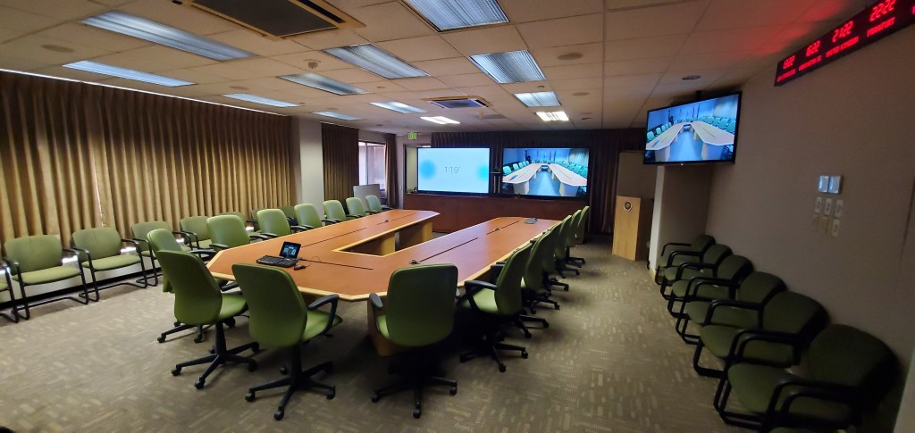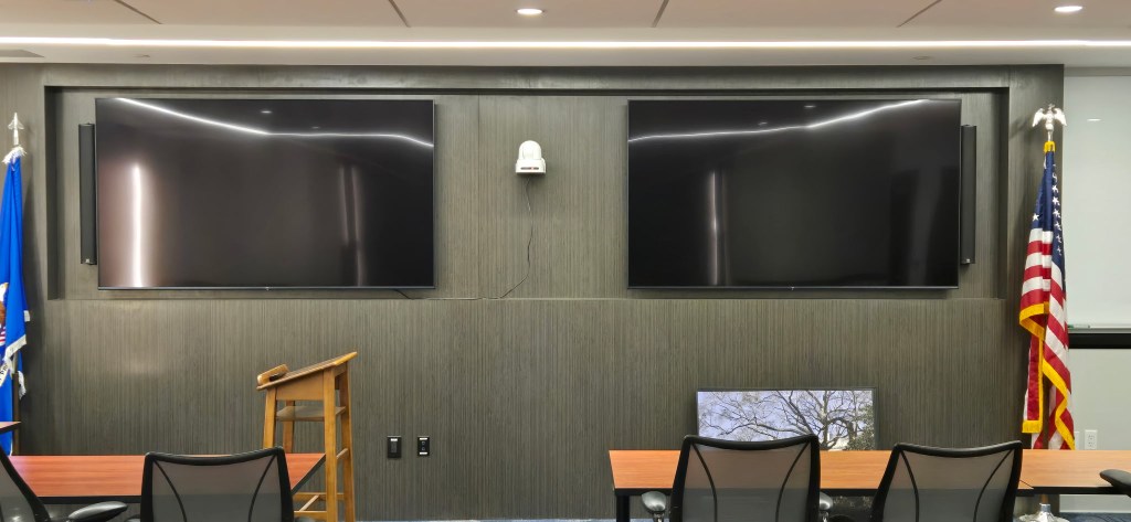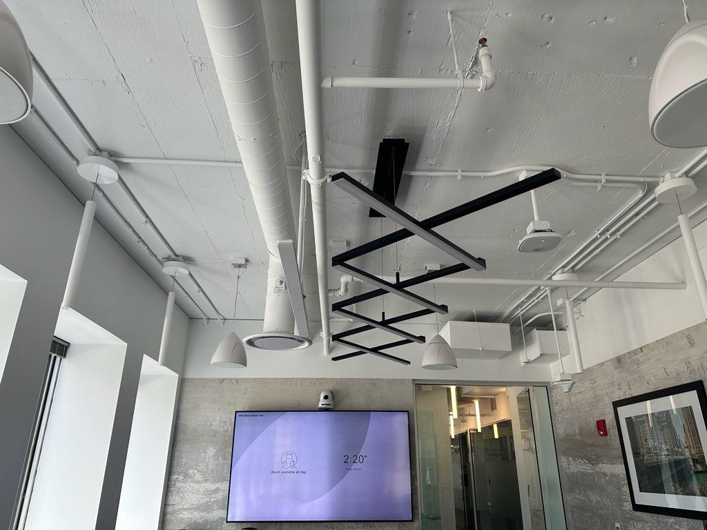 Transform your workspace with a fully integrated AV room—a purpose-built environment where all essential technology works together seamlessly. Every component is connected, from the control processor and microphones to high-quality speakers. An intuitive touch panel ensures a smooth, user-friendly, and completely customizable experience. Effortlessly manage audio, video, lighting, and even room settings—all from one central interface designed to fit your unique needs..