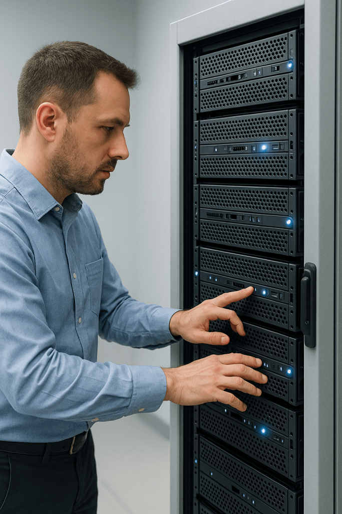 Connecting servers into a networked environment and customizing their hardware, software, and settings to meet specific performance, security, and operational requirements.
